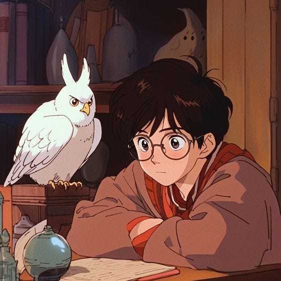 Mas aí a gente chega na euforia da Inteligência Artificial, e na possibilidade real de ter um trabalho “artístico” pronto em milésimos de segundos. Não um trabalho feito por um artista — esse está lá girando telas no Instagram pra ver se ganha mais seguidores —, mas um trabalho muito mais próximo, talvez, do que o cliente imaginou para si. E isso dá uma dorzinha no coração, mas é aquela tragédia merecida — como Philip K. Dick ensinou, a gente só teme que a máquina seja confundida com um humano porque nos tornamos confundíveis com uma máquina. E o que a gente espera da arte, em alguns casos, é facilmente realizável pela máquina mesmo — é um retrato do Harry Potter no estilo do Studio Ghibli; é o seu cachorro no estilo da Disney ou da Pixar; é uma folhinha genérica com um contorno mais ou menos deslocado que talvez tenha sido original um dia, mas que hoje aparece idêntica em 10 de cada 10 buscas por “pintura na parede” no Pinterest.