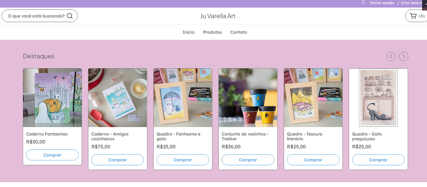 E, falando em criar, comecei o ano cumprindo uma meta das mais importantes, se vou levar essa coisa de ilustração a sério: inaugurar minha lojinha. (Ooooooh!)